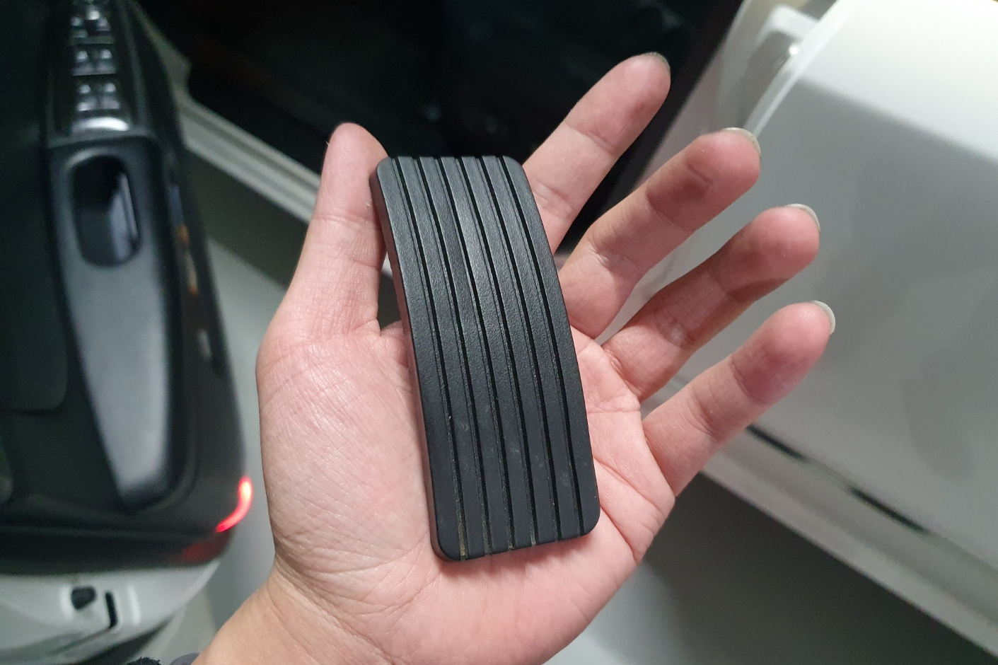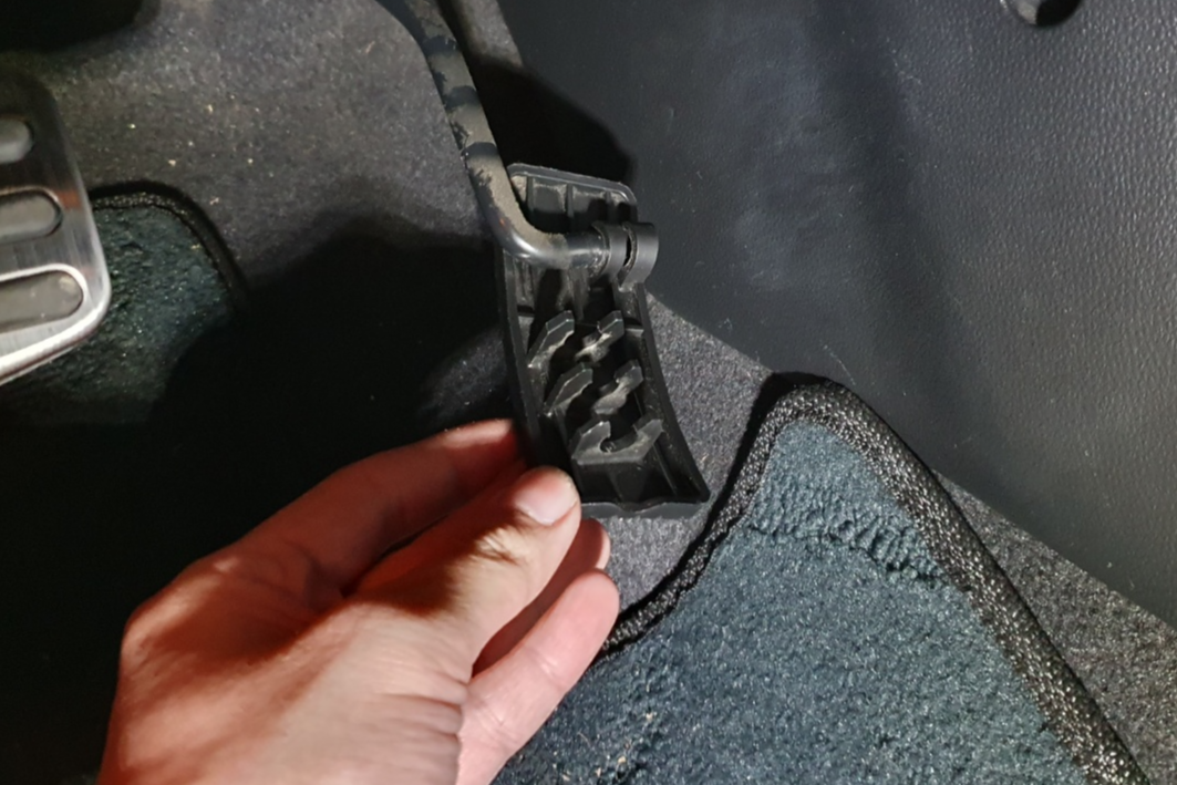 우선 분리한 고무패드를 먼저 브레이크 페달에 걸쳐줍니다.