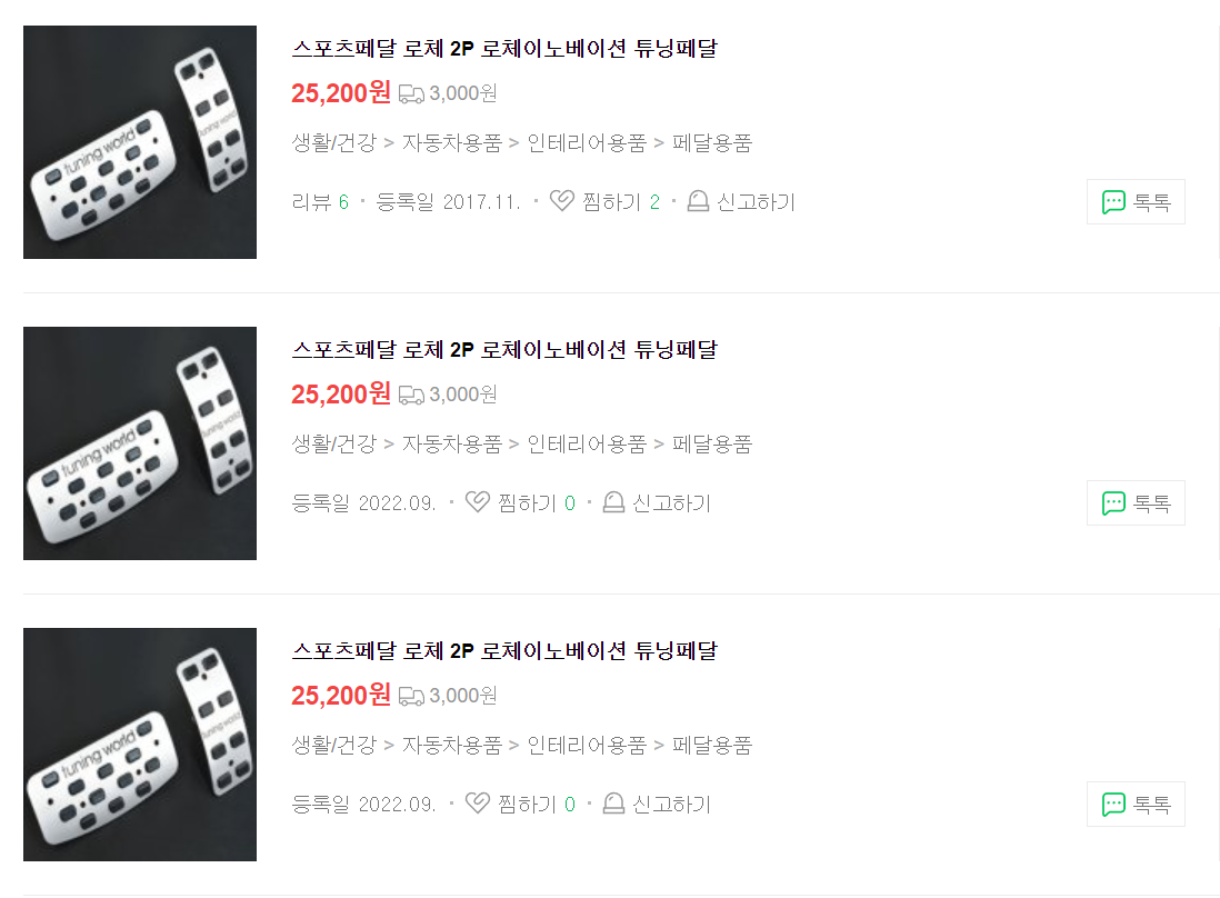 저 촌스러운 사제 페달이 25000원이나 하는데 순정 알로이 페달이 5000원대라니 이런 혜자가 없습니다.