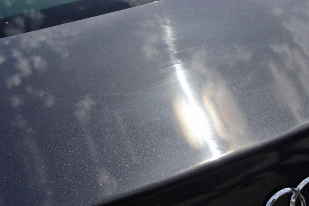 먼지털이개를 주기적으로 사용한 차는 표면에 '스월 마크' 라고 하여 거미줄을 연상시키는 잔기스들로 가득합니다. 잔기스들은 이미 표면이 손상되어 생긴 '상처'이기 때문에, 왁스나 실란트 등의 코팅제를 사용해도 절대 없애거나 감출 수 없습니다. 이 현상은 특히 검은색이나 남색 등 어두운 색 계열에서 두드러지게 나타나는데, 잔기스를 없애려면 표면을 깎아내어 연마하는 광택작업 외에는 해결이 불가합니다.